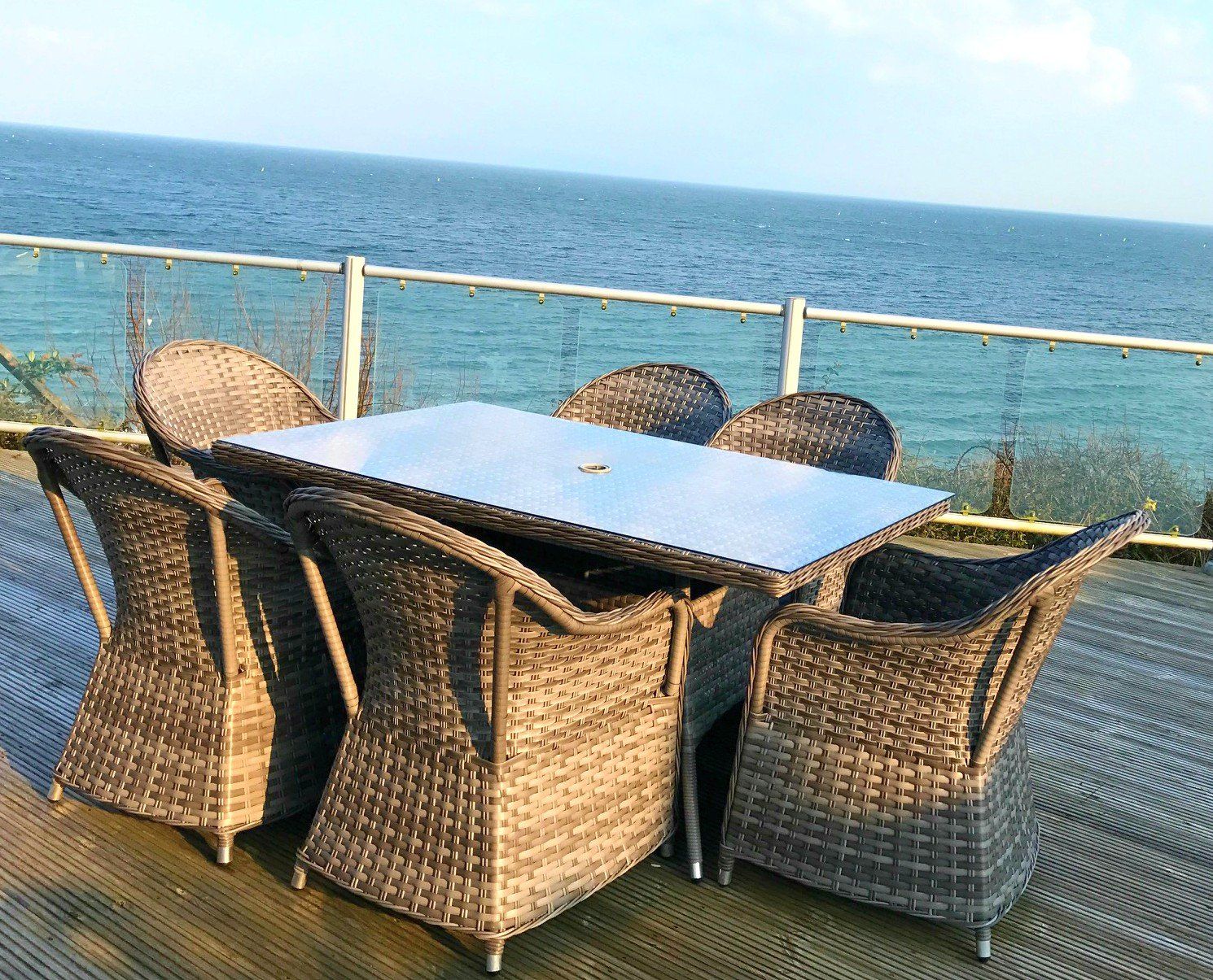 The only things I would recommend improving are the chalet steps down to beach from the decking really.